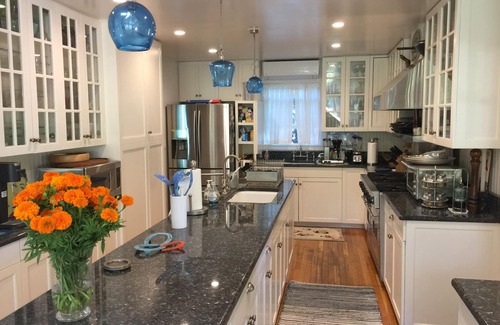 A perfect hideaway in East Hampton, just an easy walk to the Village, restaurants or bike ride to the beach. Our home has 2 master ensuite bedrooms and an additional bedroom on the first floor. It has a fully stocked professional kitchen, central air, laundry, flat screen tv's and wifi. The outdoor area is completely private and designed for entertaining or your outdoor workspace (wifi accessible). There's ample private parking available for both you and any friends. Walk out the front door to pick up a snack or a few last minute groceries at the IGA . Enjoy an evening out at Serafina, Nick and Toni's or East Hampton Grill, all within walking distance. Monthly discounts available. NOTE: There is an additional 100.00 fee per night, per guest, OVER SIX PEOPLE! Advance notice is requested for all bookings. PLEASE NOTE: We DO NOT honor the insurance policy provided by VRBO.
