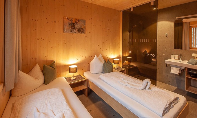 Leave everyday life behind, arrive, let yourself be inspired by the impressive mountain world. Here at the entrance to Mellau, in the midst of the mountains, our Eichen Lodge Apartments are located.Mellau offers its guests an appealing infrastructure with its own bakery, sports shops, cosy cafés, and day spas.The Mellau cable cars will comfortably take you up into the mountain world. Once at the top, numerous opportunities await for you to shape your holiday day.In winter while skiing, snowboarding or sledging. Or simply during a romantic walk through the winter landscape. In summer, explore the mountain world while hiking and biking, admire the diverse flower meadows and rest by a cooling mountain stream.Find peace in the Eichen Lodge Apartments in Mellau, listen to the rushing of the waterfall, let the day draw to a close with your loved ones and look forward to the experiences the coming day will bring.The Eichen Lodge Apartments are comfortably furnished:• 1 bedroom with double bed or 2 single beds• Living area with dining table and sofa bed• 1 bathroom with shower and toilet• Fully equipped kitchenette with cooker, oven, coffee machine and dishwasher• TV and internet in HD quality• Free WiFi• Private, free parking in the underground car park• Electric charging station for a fee• Guest folder with excursion and tour suggestions• Small terrace with seating