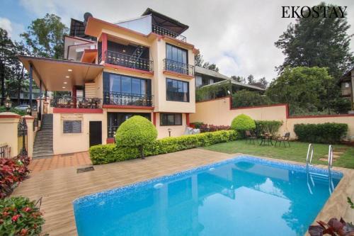 Providing a garden, EKOSTAY - Fairmont Villa offers accommodations in Panchgani. This villa features air-conditioned accommodations with a balcony and free Wifi. The villa provides parking on-site, an outdoor swimming pool, and private check-in and check-out. Featuring a terrace and mountain views, the spacious villa includes 5 bedrooms, a living room, flat-screen TV, an equipped kitchen, and 6 bathrooms with a bath and a shower. For added privacy, the accommodation features a private entrance. There is an on-site bar. Parsi Point is 2.3 miles from the villa, while Lingmala Falls is 4.2 miles from the property. Pune International Airport is 71 miles away.