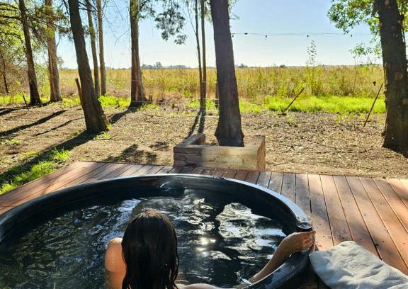 Featuring a garden, El Alcanfor provides accommodations in Chivilcoy. Private parking is available on site at this recently renovated property. Outdoor seating is also available at the luxury tent. With free Wifi, this luxury tent features a satellite flat-screen TV, and a fully equipped kitchen with an oven and toaster. Towels and bed linen are available in the luxury tent. The accommodation offers an air conditioning, a heating, and a private bathroom. During warmer months, you can make use of the barbecue facilities and eat on the private patio. El Alcanfor also offers a rooftop pool and a hot tub for guests to relax in. Ezeiza International Airport is 117 miles from the property.