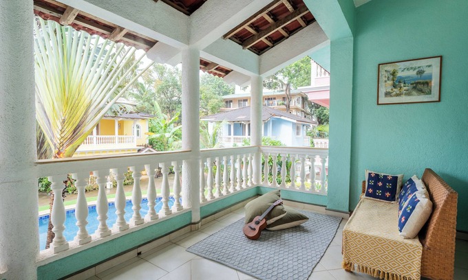 This fully furnished Goan-Portuguese house is in the charming village of Nagoa, North Goa. As you enter the gated estate, tranquility surrounds you, with panoramic views of coconut trees, paddy fields, and lush greenery all around!
