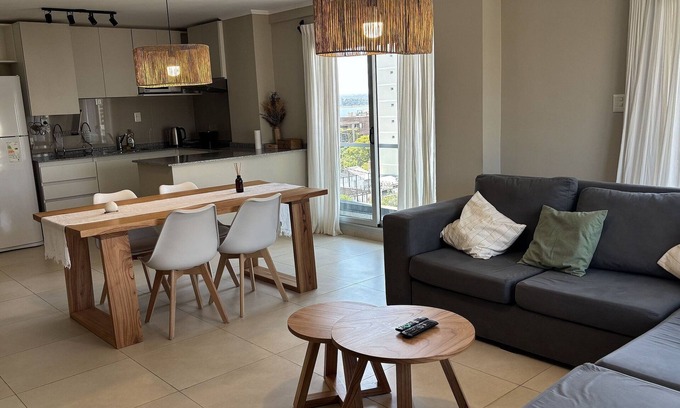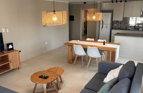 Enjoy a modern and comfortable stay in this elegant apartment with capacity for 4 people. Relax on the private balcony with an electric grill, prepare your meals in the fully equipped kitchen, and rest in air-conditioned rooms with comfortable beds. You will also have access to the building's pool and an exclusive common room for meetings or special gatherings.