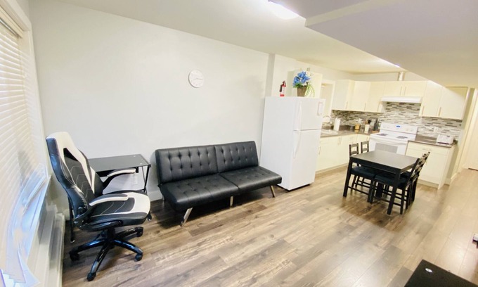 This 900 sq ft suite with separate entrance is fully furnished, and has a full kitchen with all the pots, pans and utensils to make a delicious meal. The living room has a comfy sofa bed, TV, Netflix, Amazon Prime and Pik TV and High speed WiFi.