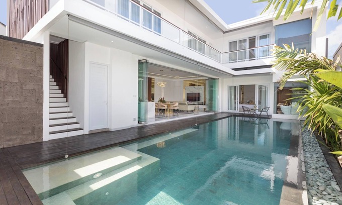 Welcome to this sophisticated 4-bedroom Villa located in the bustling center of Legian, Kuta. Designed to accommodate up to eight people, it is the perfect place for a luxurious and modern vacation.