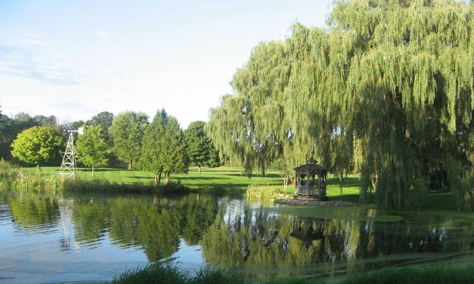 Our 1700 square foot Honeycreek Lodge is a beautifully refurbished barn located on 14 acres of manicured lawns and gardens and a 3 acre pond bordered by large draping weeping willows.