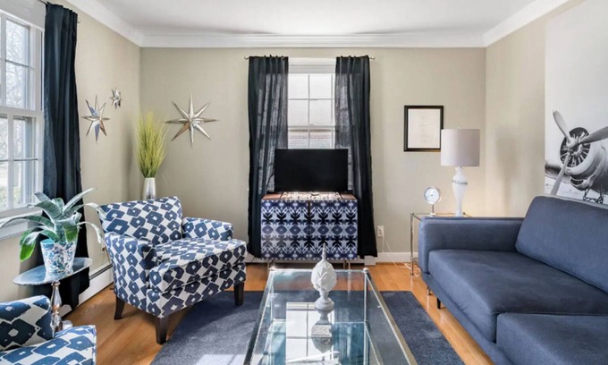 Stroll from room to room and admire the modern yet elegant decor, done with a designer's touch. The family kitchen has upscale appliances and a cute breakfast bar. The sun room out back is a favorite with guests and offers a place to unwind with a view of a private garden. The first floor bedroom and bath offers both privacy and the convenience of a guest wishing to stay on ground-level.