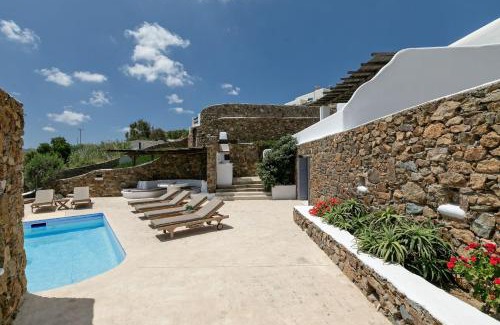Elegant Mykonos Villa Private Pool Villa Atmos 3 Bedrooms Sea View Panormos offers accommodations in Mykonos, a 5-minute walk from Panormos Beach and 4.1 miles from Mykonos Windmills. The property is around 4.2 miles from Archaeological Museum of Mykonos, 4.2 miles from Little Venice, and 4.3 miles from Mykonos Old Port. There's an outdoor pool and guests have access to free Wifi and parking on-site. The air-conditioned villa is composed of 3 separate bedrooms, a fully equipped kitchen with a dishwasher and an oven, and 2 bathrooms. Guests can enjoy a meal on an outdoor dining area while overlooking the sea views. The accommodation is non-smoking. Guests at the villa can enjoy cycling nearby, or make the most of the garden. Mykonos New Port is 5.1 miles from Elegant Mykonos Villa Private Pool Villa Atmos 3 Bedrooms Sea View Panormos, while Fabrica Square is 3.9 miles from the property. Mykonos Airport is 3.1 miles away.