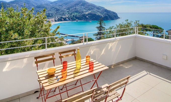 Modern holiday apartment with a splendid view of the Gulf of Levanto.