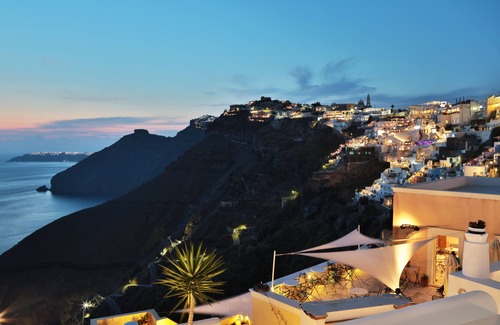Villa is ideally located on the edge of the caldera, just a 3-minute walk from the center of Fira. Where you can find, shops, restaurants, taverns, pub, clubs, Lounge Cafe & Cocktail Bar.