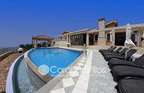 This elegant and spacious villa with large infinity pool found in a peaceful area on the hills above Peyia village and boasts exceptional views of Pegeia, Coral Bay and Paphos grasslands and coastline. It is only 15 min drive to the Coral Bay .