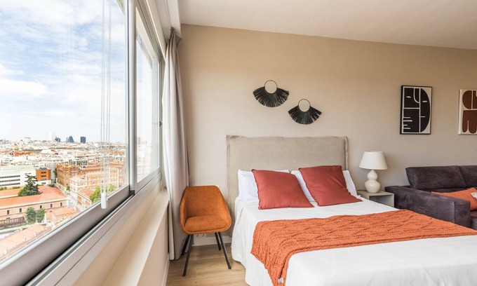Elegant with exclusive views near Gran Via is located in Moncloa - Arguelles. Elegant with exclusive views near Gran Via provides accommodation, featuring Air Conditioner, TV, Bedding/Linens, among other amenities. This Apartment features Air Conditioner, TV, Bedding/Linens, to make your stay a comfortable one.