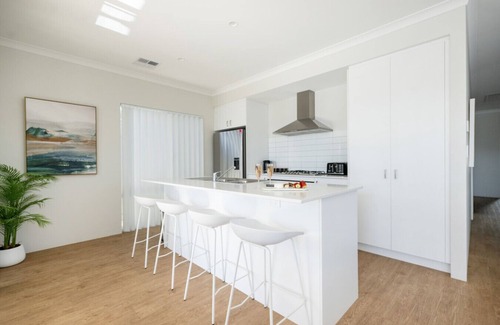 Escape to our modern and elegantly styled Villa, where you can unwind and recharge in a comfortable setting. The interior is tastefully decorated with a coastal twist, creating a soothing atmosphere for a truly relaxing stay. Enjoy the bright, open concept living area, fully equipped modern kitchen and a furnished outdoor patio ideal for alfresco dining. Accomodating 6 guests comfortably, with a Luxurious King Suite, Walk In Robe and Ensuite and 2 Elegant Queen rooms, all with blockout blinds, you can rest easy knowing you'll have a restful night's sleep. Smell the barista made coffee just across the road from the popular Mangles Corner Store or head a little further into Bunbury's main street for Heritage Pubs, quaint Cafes, boutique shops and more.