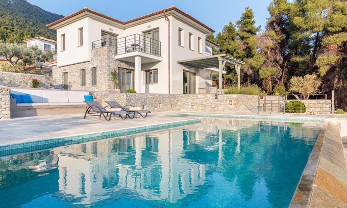 Offering a garden, Elios Private Living provides accommodations in Neo Klima. With sea views, this accommodation features a terrace and a swimming pool. The villa also offers free Wifi, free private parking, and facilities for disabled guests. This air-conditioned 4-bedroom villa comes with a seating area, a satellite flat-screen TV, and a fully equipped kitchen with a dishwasher. Guests can enjoy a meal on an outdoor dining area while overlooking the mountain views. The villa offers bed linen, towels, and daily room service. The villa has a picnic area where you can spend the day outdoors. Elios Beach is a 5-minute walk from the villa, while Folklore Museum Skopelos is 7.8 miles away. Skiathos Airport is 15 miles from the property.
