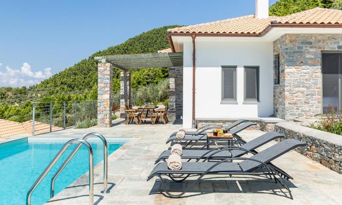 Providing a garden, Elios Zen Villas provides accommodations in Neo Klima. This property offers a private pool, free Wifi, and free private parking. The accommodation features a 24-hour front desk and luggage storage for guests. Featuring a terrace with sea views, this villa also comes with a satellite flat-screen TV, a well-equipped kitchen with an oven, a fridge, and a stovetop, as well as 1 bathroom with a shower and bathrobes. The villa offers bed linen, towels, and daily room service. If you'd like to discover the area, cycling and walking tours are possible in the surrounding area, and the villa can arrange a car rental service. Elios Beach is a 7-minute walk from Elios Zen Villas, while Folklore Museum Skopelos is 7.9 miles from the property. Skiathos Airport is 15 miles away.