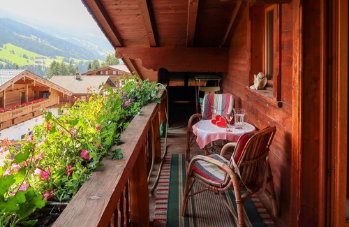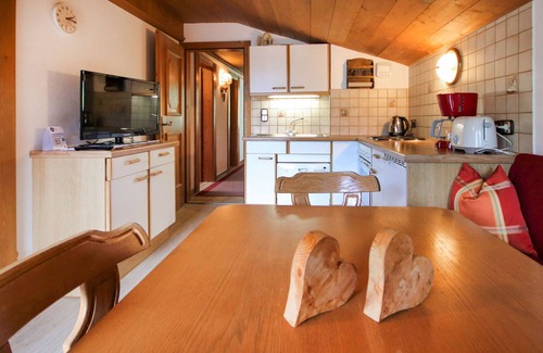 "Elisabeth", 4-room apartment 65 m2, on the top floor. Partly with sloping ceilings, cosy and wooden furniture furnishings: top floor: (steep stair) entrance hall. 1 double bedroom with 1 double bed. 1 room with 2 beds. 1 room with 1 bed. Kitchen-/living room (4 hot plates, oven, dishwasher, toaster, kettle, electric coffee machine) with dining nook and satellite TV (flat screen), radio. Exit to the balcony. Bathroom, sep. WC, double hand-basin. Heating. Carpet. Balcony. Balcony furniture. Marvellous view of the mountains. Facilities: hair dryer. Internet (WiFi, free). Please note: non-smokers only. Private entrance.