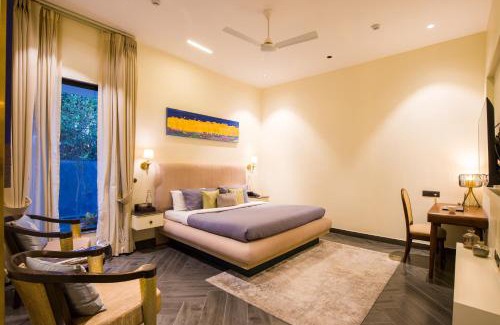 ELIVAAS Ibiza 4 BHK Farmhouse with Pvt Pool, Garden & Indoor Bar is located in New Delhi, just 7.5 miles from Qutub Minar and 9.1 miles from MG Road. This property offers access to a balcony, free private parking, and free Wifi. Lodhi Gardens is 13 miles from the villa and Gandhi Smriti is 13 miles away. This villa will provide guests with 4 bedrooms, a flat-screen TV, and air conditioning. The villa also provides guests with 4 bathrooms. The accommodation is non-smoking. WorldMark Gurgaon is 9.2 miles from the villa, while Tughlaqabad Fort is 12 miles away. Delhi International Airport is 13 miles from the property.