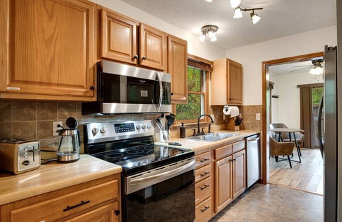 - Kitchen: Fully equipped, drip coffee maker, coffee/tea/hot chocolate. Stainless steel appliances, tea kettle, blender, toaster, microwave, dishwasher,