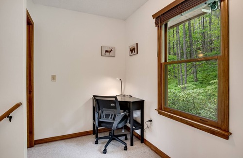 - Indoor Living: Gas fireplace, Smart TV (we do not provide cable, please log in to your own streaming accounts), washer/dryer, Wi-Fi, and board games. The cabin sits at over 4,350 feet and has a central heat system but NO AIR CONDITIONING SYSTEM. To help circulate the cool mountain air, each room has a ceiling fan and all windows have screens.