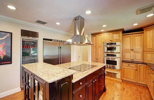 A massive kitchen with top-of-the-line appliances offers a perfect gathering spot for family and friends where fancy dinners can be created and stories shared. Relax in front of the 86" TV and the fireplace or play a few rounds of pool.