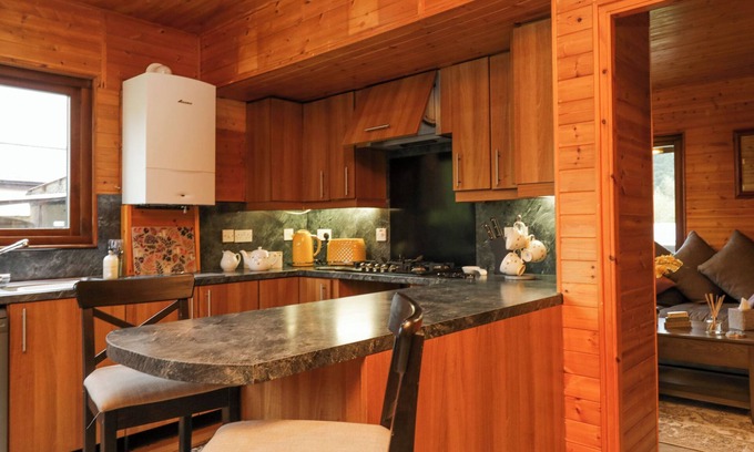 Ellerbeck Lodge, a single-storey lodge, consists of a kitchen/diner with breakfast bar seating two, dining seating for four, electric oven, gas hob, dishwasher, air fryer, microwave, kettle, and toaster, a utility with washing machine, fridge, and freezer, and a sitting room with a Smart TV and electric fire. The bedrooms consist of a double with an en-suite and a double with a Jack-and-Jill bathroom with a bath, shower over, basin, and WC. WiFi, fuel, power, bed linen, and towels are included in the rent. Travel cot and highchair available upon request. Outside, there is a front enclosed garden with patio, lawn, gravelled area, picnic bench, and off-road parking for two cars. Sorry, no pets and no smoking. Guests can find the closest shop in 1.7 miles, a pub in 1.6 miles, and within 0.1 miles, a fishing lake. Wherever your exploration takes you, enjoy all this with a stay at Ellerbeck Lodge. Note: There is a fish pond in the garden, please supervise children.