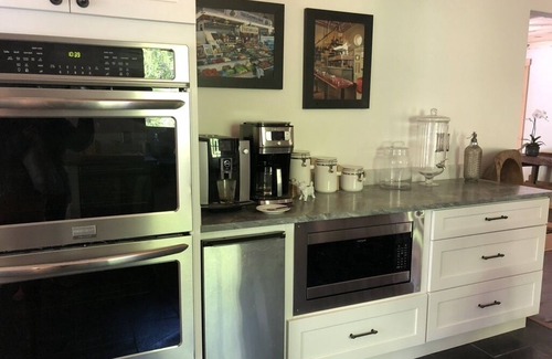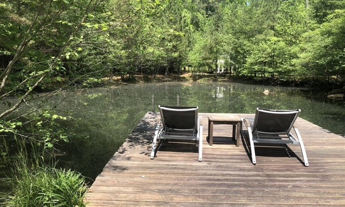 5-star private compound on 5+ secluded acres; swim and fish in the large private pond and creek meandering throughout the property; croquet, bocce, badminton and more; covered back deck overlooking the creek w/big screen tv, daybed, and gas firetable; separate game room w/pool table, games, and game table, which doubles as a separate work space when needed; jasmine covered pagoda by the creek; herb garden and chef's kitchen, fully equipped with gas stove, double ovens, and ice maker; webber gas grill and pizza oven; wood burning fire pit; luxurious linens; 10 minutes from downtown but a world away