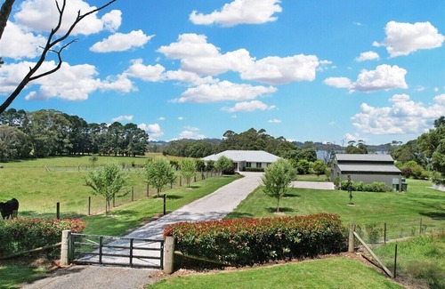 Elysium Cottage is new 2 Bedroom cottage on a 65 acre cattle property in Fitzroy Falls. The property overlooks the beautiful Fitzroy Falls Reservoir and is situated in a natural bushland setting and wildlife corridor. There are 2 bedrooms - 1 Queen Bed and the other is a Twin Room. The Cottage has an open-plan Living, Kitchen & Dining Area with wood fire heater. The bathroom is compact, sleek & modern. The cottage also has a verandah as well as private courtyard with bbq facilities. All the living & outdoor areas have views of the lake. Stylishly presented throughout with all the modern conveniences that you would expect for a country getaway. Although the Cottage is positioned 20 metres from the main house, your privacy is assured. Fitzroy Falls is only 15 minutes away from the main town centres of Moss Vale, Robertson & Bowral where you'll find plenty of cafes, pubs & boutique shops. The Morton National Park & the Falls themselves are a just a 5 minute drive from here.