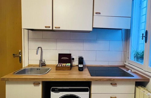 A safe, air conditioning, a desk, and a printer are featured at this 1-bedroom, 1-bathroom rental. Bathroom amenities include a hair dryer, a bidet, and towels. Prepare a home-cooked meal in the kitchen, complete with an oven, a stovetop, and a refrigerator, as well as a coffee maker, an electric kettle, and cookware. And because there's access to laundry facilities, you can go a bit lighter on your packing.