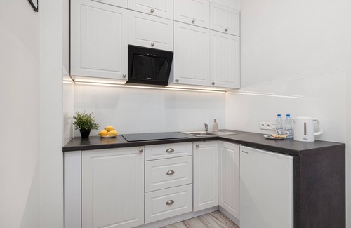 Emilii Plater Studio #61 is a cozy apartment featuring a living room with a sofa bed and a comfortable double bed, a kitchen, and a bathroom. It offers a range of top-class amenities, including free WiFi, terrestrial television, a washing machine, an iron, a hairdryer, an induction cooker, a refrigerator with a freezer, and kitchen accessories.