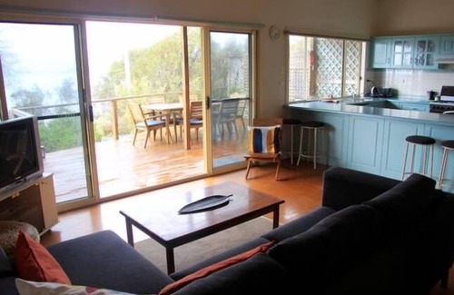 A modern beach house sitting on top of the dune, just a few steps down to the sea. The property has three bedrooms sleeping up to six people, one bathroom, a large open plan living area with huge kitchen, laundry, and a lovely sunny seaside deck. The property is surrounded by native vegetation and you are likely to see and hear wildlife including galahs, koalas, and penguins. Emu Bay is a very safe and beautiful beach, good for swimming, fishing, kayaking and exploring.