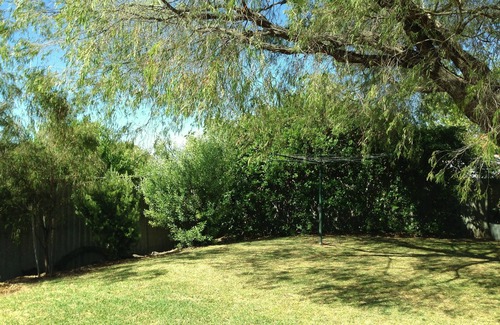 The kitchen/dining area opens out onto the grass backyard and the shade of a large peppermint tree, perfect for a cup of tea in the sunshine. The backyard is a common area, shared with the adjoining Cockleshell Cottage.