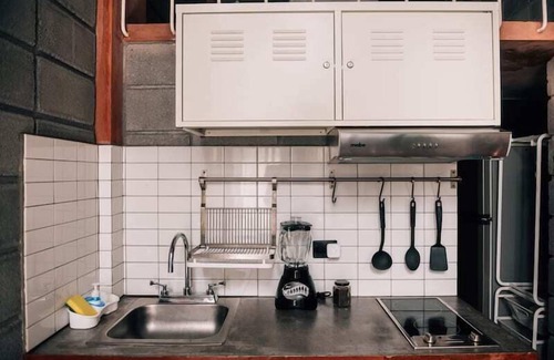 Este pequeño loft de altura y media con diseño premiado de una habitacion ideal para viajes cortos(o como refugio de tu rutina). La cam se encuentra en un pequeño mezzanine de media altura. Tiene acceso automatizado y cuenta con todo lo que necesitas: desde Wi-Fi y cocina equipada, hasta toallas extra. Además, estaremos disponibles para asegurarnos de que tu estancia sea una gran experiencia.