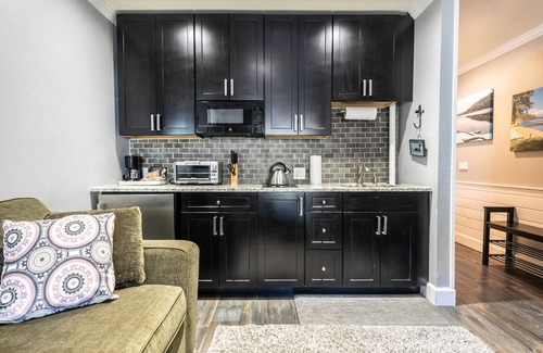 Our units are equipped with various amenities to cater to your needs, including free internet access, a sofa sleeper, a flat-screen TV with DirecTV service, a refrigerator and microwave, a coffee station, a fan, a hair dryer, and an iron and ironing board, ensuring you have everything you need for a comfortable stay.
