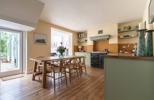 Situated in a great location in the heart of trendy Islington with the picturesque De Beauvoir town just a short distance away, Englefield Road is a warm and welcoming London townhouse with five spacious bedrooms. Sleeping up to ten guests, this elegant home is a sumptuous blend of old and new with plenty of character. De Beauvoir town is one of London’s hidden gems. This historic enclave between Hackney and Islington is a delightful area where you can stroll along the Regent's Canal and find a coffee shop for a mid-morning break or spend the afternoon visiting galleries and boutiques. Excellent transport links, including overland rail from Haggerston and Dalston Junction and the tube from Highbury & Islington, make it easy to access central London. Throughout Englefield Road, there is a real sense of personality. The two sitting rooms have a bohemian feel with unique artwork and retro-style furniture. The second sitting room is flooded with light thanks to the conservatory extension that looks out onto a verdant, mature garden. The kitchen is filled with high-end appliances and has a country-cottage charm, including an inviting dining area and access to the garden patio for al fresco BBQs. For business travellers, a well-equipped office with fast, reliable WiFi provides a quiet space to work. The home's five bedrooms are individually decorated to provide peaceful havens where you can relax and unwind at the end of the day. The primary suite is on the second level and has a king-size bed and an attractive ensuite with a walk-in shower. The second bedroom, also furnished with a king-size bed, is also on this floor, as well as a separate bathroom with a feature roll-top bath. The three remaining bedrooms are on the third level and include two rooms with king-size beds and a sunny children's room with a single bed and optional trundle.