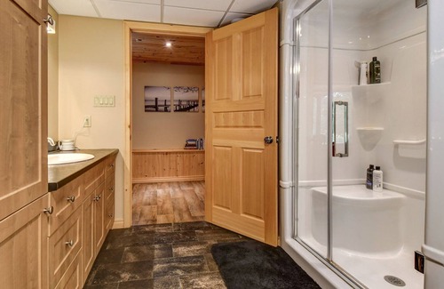 8 year old home has 2 levels with 2600 sq ft separate living on each floor. Each floor is rented SEPARATELY (Upper Level listing 7709390). We are offering the lower level which has 3 bedrooms, 2-3 piece baths, fully equipped kitchen, 2 walk outs, large deck. It is likely there will be another group renting upstairs during your stay.