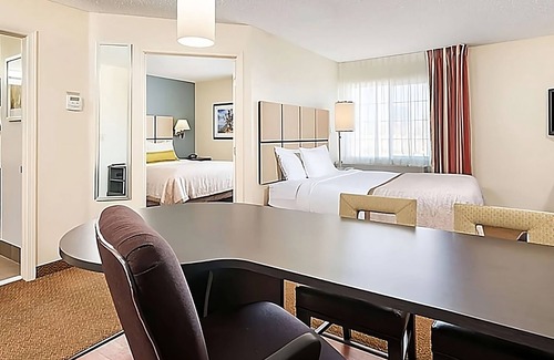 Discover a welcoming hideaway designed for both leisure and business travelers. The roomy suites come equipped with a full kitchen, relaxing workspaces, a 42-inch flat-screen TV, air conditioning, and free high-speed Wi-Fi, ensuring a comfortable and effective stay. Make use of the laundry facilities, barbecue grill, picnic area, and convenience shop that are on-site. Maintain your workout program in our cutting-edge gym and use the outdoor pool for relaxation afterward. We also offer 24-hour service and security at the front desk.