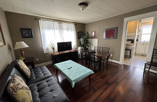 MULTI-UNIT HOUSE: This apartment has an apartment below it. As such, you will may hear the normal noises of other tenants in the building. This may include: people walking, pets occasionally barking, muffled voices, muffled music, muffled TV noises, furniture being moved, the occasional thing being dropped on the floor. Please keep aware and be respectful of the tenants below you. Wear socks inside, keep their dogs from excessive barking, and keep quiet hours of 10pm - 8am. If you notice the downstairs tenants causing excessive noise, especially during quiet hours, please let us know. If you would like us to send over a noise machine for your stay, please let us know. By booking this unit, you acknowledge this reality of potential noise.