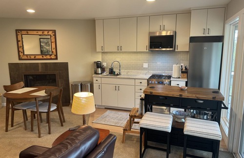 After sharing our ground floor apartment for 12 years as Premier Hosts, with over 200 five-star reviews (VRBO #341581, https://www.vrbo.com/341581?unitId=341581), we are ready to welcome you to our second place! This newly completed fully contained apartment in our family home in a quiet residential neighborhood is reached by a separate entrance one floor down from street level. This unit boasts a spacious open concept living/dining/kitchen area with all appliances. You’ll have full refrigerator, gas stove, dishwasher, microwave and a lovely gas fireplace. The kitchen is fully stocked with cooking utensils and dinnerware. You’ll enjoy a comfortable leather sofa with two recliners which provides perfect viewing spot for 75inch smart TV. The table seats 4 guests with multiple other seating areas for your group. The room has a lovely outlook to the wooded garden with a view of the Burke-Gilman trail with outdoor access to the full length deck through sliding doors. On the deck you can enjoy the view or grill on the large handy gas grill. Garden, patio and fire pit use by arrangement.