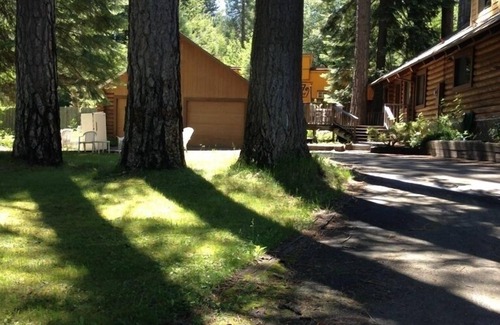 Joanie's is an authentic log home. It sits on a large lot, surrounded by majestic pines. We are one block from downtown in the old fashioned town of Mc Cloud. The Great Room is highlighted by a stone fireplace. You can retire to one of our 5 spacious bedrooms. The Oak Room is named for its fine oak antiques, includes a full bath and king size bed. The Pine Room has rustic pine decor with an open full bath and queen bed. The Wicker Room has a bright and cheery feel with a half bath and queen bed. The Cedar Room is a quaint and cozy loft room, includes an in room sink and queen bed. The 49er room is a fun loft room that sports fans will appreciate, includes a full private bath and a queen bed and a trundle bed. There is an additional full bath and washer/dryer available downstairs.