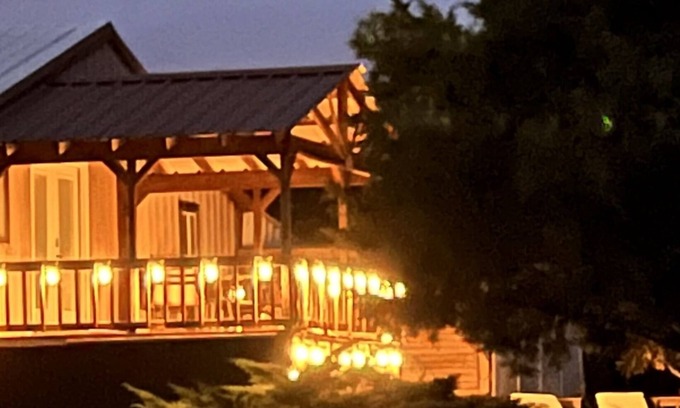 The Loft is the upper story of a house with my shop below. The loft has a large deck which has a grill, hammock, outdoor table for 4, two lounge seats and a hot tub. The house has a fully equipped kitchen, large jd tv in the bedroom,dining room, and a living area with a reclining sofa and TV. Our property has a vineyard, an almost 4,000 square foot cedar covered veranda with darts, music, TVs, corn hole, ( we offer wedding and Reception packages in a separate request). Lots of trees, a pond with a deck, and shaded places to be outside. We have plenty of wildlife including rabbits, roadrunners, and cardinals, as well as frogs, fish and turtles in the pond. In the summer, we have lots of purple martins who come back year after year.