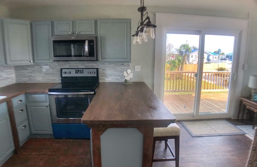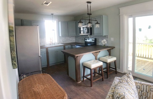 Upper level cottage across the street from the beach. Recently remodeled and updated. 2 bedroom 1 bathroom. Huge wrap nearly around deck with multiple seating areas with views of both sunrise and sunsets. The beach is just a short walk across the street. Large covered outdoor bar and cooking area! Adorable kitchen and living room! Each bedroom with a queen bed! Jack & Jill bathroom! Outdoor shower too with hot and cold water to wash away all the beach sand just below the deck. Just a block away from Shipwreck Restaurant & Bar. Come make incredible memories here!