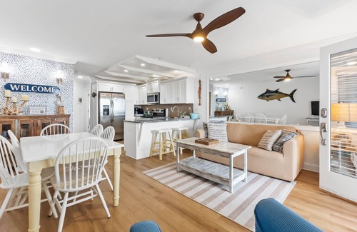 Only steps away from the beach and the pool, this condo has everything you need for a perfect beach escape. The primary bedroom has a king bed and a half bathroom. The hallway has a full bathroom as well as a built-in nook with a twin bed on the top and a full bed on the bottom. There is also a full sleeper sofa in the family room that can provide additional sleeping space for children. Comfortably sleeps six- 2 adults and up to 4 children.