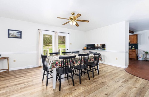 The home features 4 bedrooms (5 beds), 3 full bathrooms, and a flexible layout that’s ideal for both families and friend groups. Three bedrooms and two full baths are on the main level, with just one small step to enter — great for those with mobility needs. Enjoy high-speed Wi-Fi throughout, a warm fireplace for cozy evenings, and a fully stocked kitchen and home to ensure a wonderful stay.
