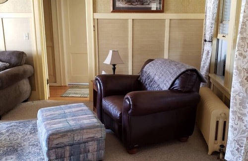 Charming two bedroom home close to downtown Fargo, NDSU, Civic Center, Fargo Dome and downtown Sanford Hospital. The house is fully equipped with fast wifi, smart TVs, and streaming services. The newly-remodeled bathroom features a walk-in shower and heated tile floor. The kitchen is ready to use with Keurig and drip coffee machines, plus all the gadgets/small appliances you will need during your stay. This space is great for longer stays with a desk, off-street parking, a patio in back, and a cedar deck on the front. The property is located on a corner lot with a well-established lilac hedge along the entire backyard.