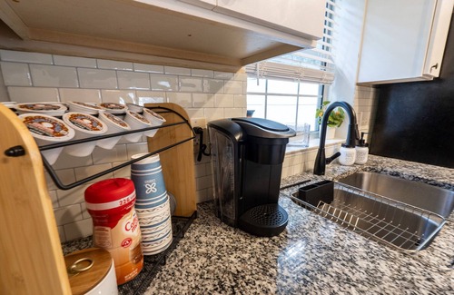 Cozy 3 Bedrooms 2 Full Baths house in a nice neighborhood with fenced backyard close to restaurants, shopping stores in this city. There is one outside cameras near the front door. Self check in and out lock.Perfect for travel nurses, couples, families, or any other getaway! The house has three bedrooms, two bedrooms with a queen sized bed share a full bathroom located upstairs, while the master bedroom with a king bed has its own bathroom located downstairs. The kitchen has everything you need to to prepare meals during your stay. Living room features a smart Tv with Netflix, hulu and Disney for you, Enjoy your stay here