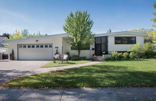 Historic Butler Home on Fargo's Iconic 8th Street. This designer Midcentury Modern 5,000 sq ft beauty features a heated indoor pool, 6 bedrooms including 2 King-bed masters, cabana room off of pool, 4 bathrooms, kid's bunk room, man cave, outdoor entertaining space including a 3:1 charcoal/smoker/gas grill, and much more.