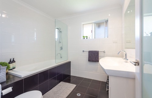Upstairs the house features airy open plan kitchen, dining and living space inviting plenty of natural light. There are two queen bedrooms and one with two singles (each room has it's own portable heater) plus a generous sized bathroom and a relaxing bathtub for the days you need to unwind with a book (and if you forget your own, there’s a selection of books in the downstairs retreat).