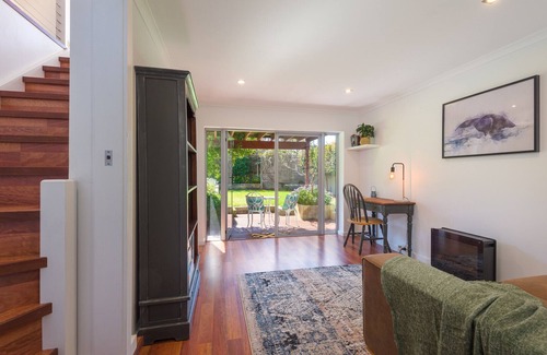 For those that might need to work away from home, there’s wifi and a dedicated work desk downstairs which also features an ensuite, comfy couch and downstairs alfresco area. This is also a wonderful private space to curl up with a great book and cup of tea while looking out to the lush gardens, or to sit and meditate.
