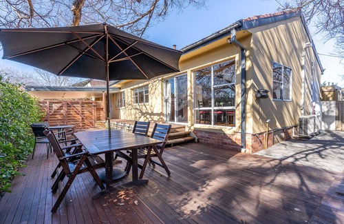 Quiet location close to Manuka and Kingston. Surrounded by imposing trees and greenery this spacious home is only a short walk or drive to restaurants and shops. It is also close to key tourist attractions surrounding Lake Burley Griffin. With two living areas inside and very private gardens and decks outside it is a lovely house to relax in. Easily accessible and beautifully renovated the house has a bathroom for each bedroom. Parking is under cover and at the door, behind secure gates.