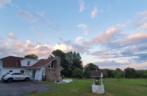Whether you’re taking in an outdoor concert at Bethel Woods or a weekend of outdoor adventure, i.e. fishing, boating, hunting or just doing nothing but breathe nature, this home is the perfect place to getaway. Spend a week or just the weekend relaxing on 100+ acres of many things the stone house has to offer. 3 bedrooms, modern country kitchen, and a massive backyard to relax. Available any day of the week, minimum two nights stay. Full mth welcomed. Dog house for his/her vacation as well :)