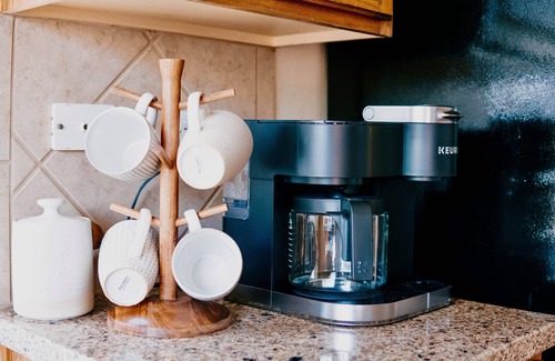 • Fully appointed kitchen with all appliances including stove oven, coffee maker, refrigerator, dishwasher, and microwave.